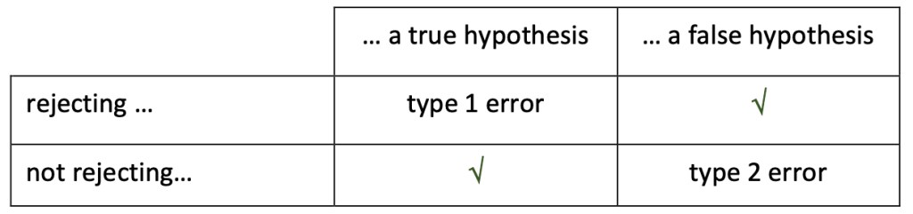 A type 1 error occurs when right is considered wrong; a type 2 error when wrong is considered right.