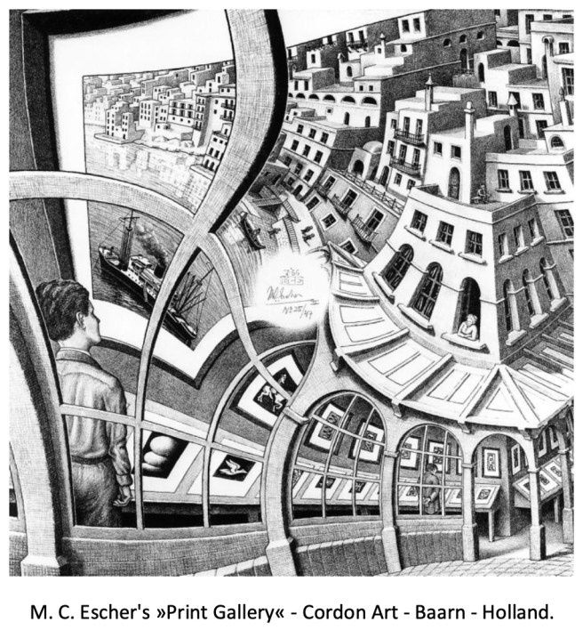 Wittgenstein, like all philosophers and their followers, inevitably suffered from his own prison of thought. Yet he left us perhaps the most beautiful metaphor for this condition — which I used as the opening quotation of my first publication The Ultimate Taboo, alongside M.C. Escher’s Picture Gallery: